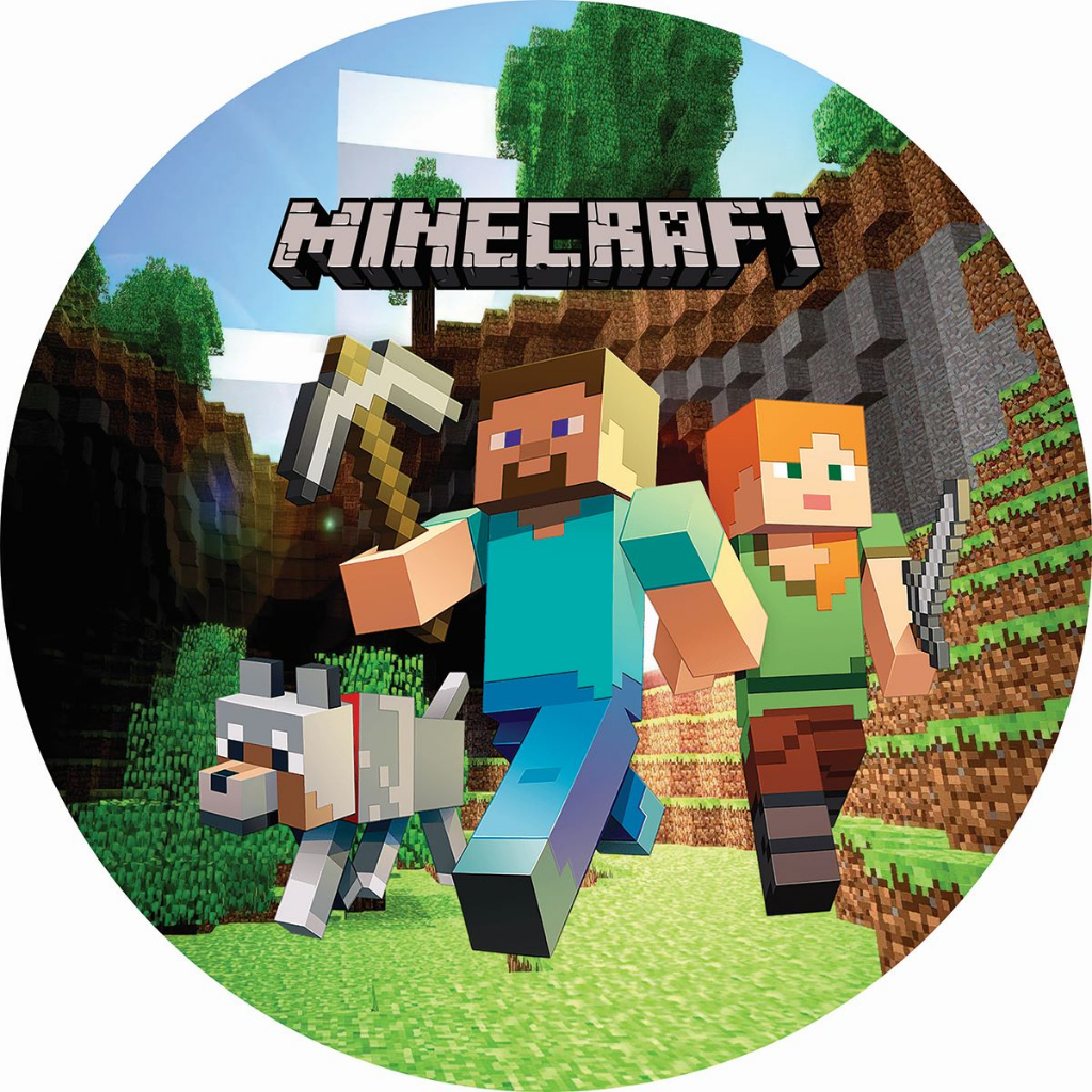 Painel Redondo Minecraft Em Tecido Sublimado 1,50m X 1,50m