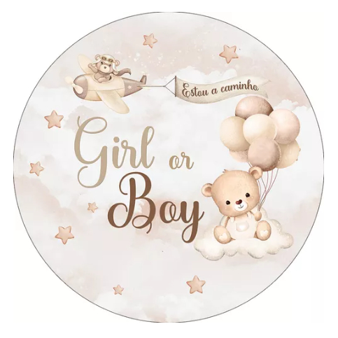 Painel Redondo em Tecido Sublimado 1,50m X 1,50m Chá Revelação