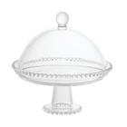 Prato de Cristal Porta Bolo Boleira Queijeira Suporte Doces com Pé e Tampa Pearl Bolinhas Transparente Wolff