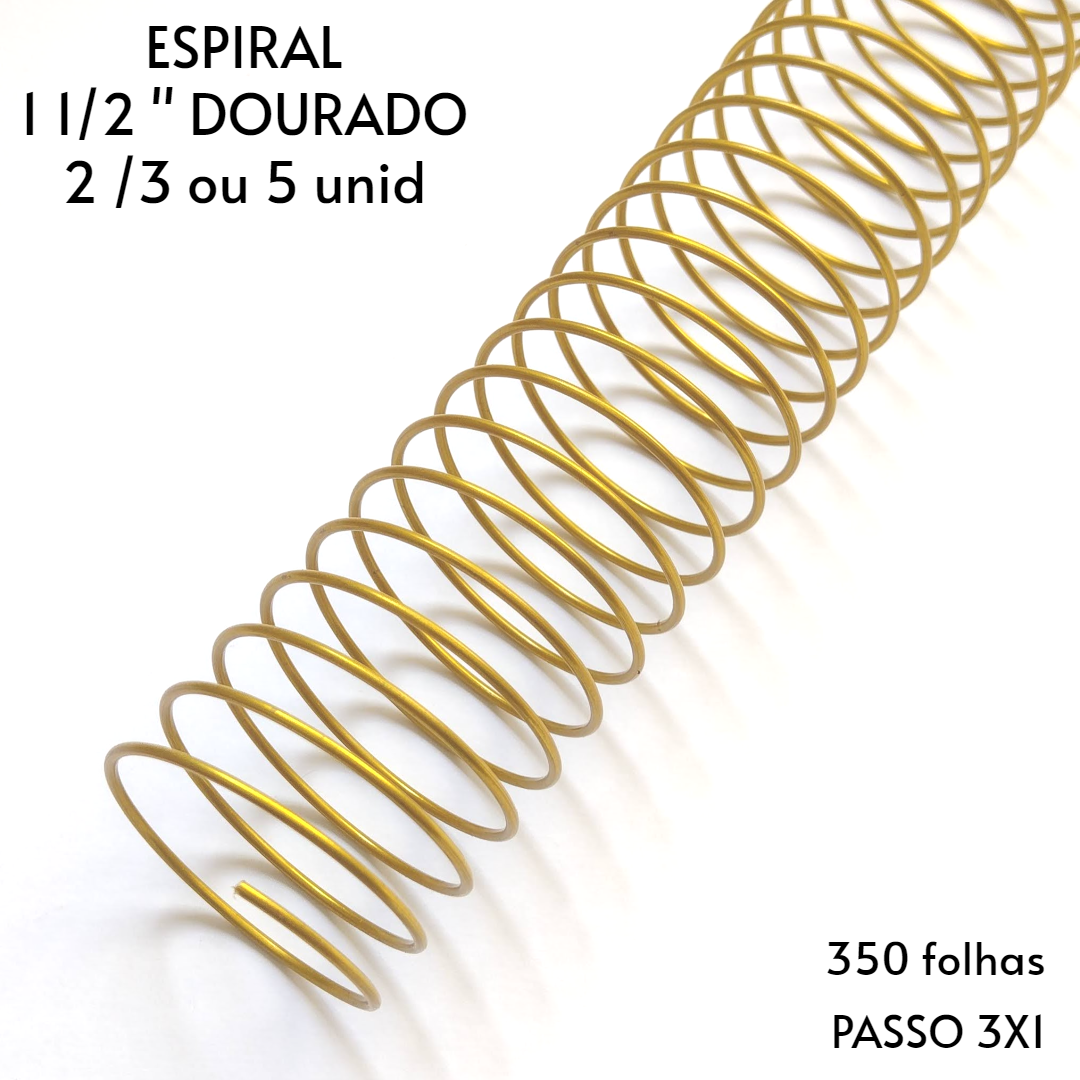 KIT C/ 03 - Espiral de Aço p/ Encadernação Revestido em Nylon 1 1/2'' (350 fls) Passo 3x1 - DOURADO
