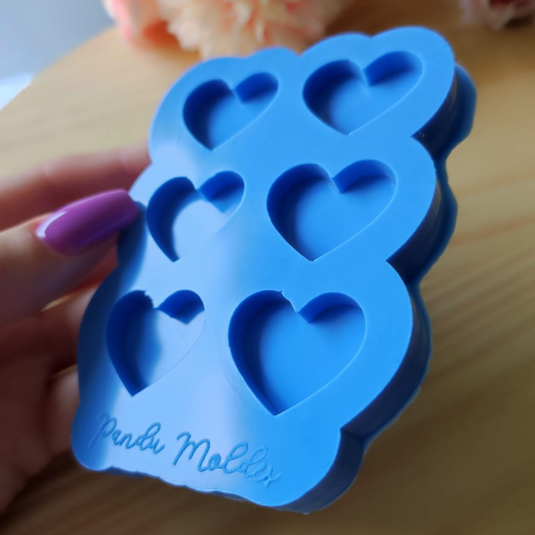 Molde de Silicone para Resina Chaveiro Coração 6 Cavidades