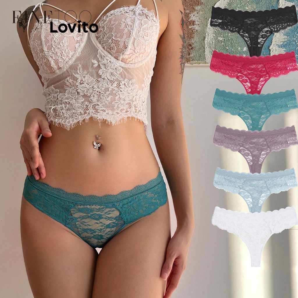 Lovito Calcinha sexy de renda floral para mulheres LCW06106