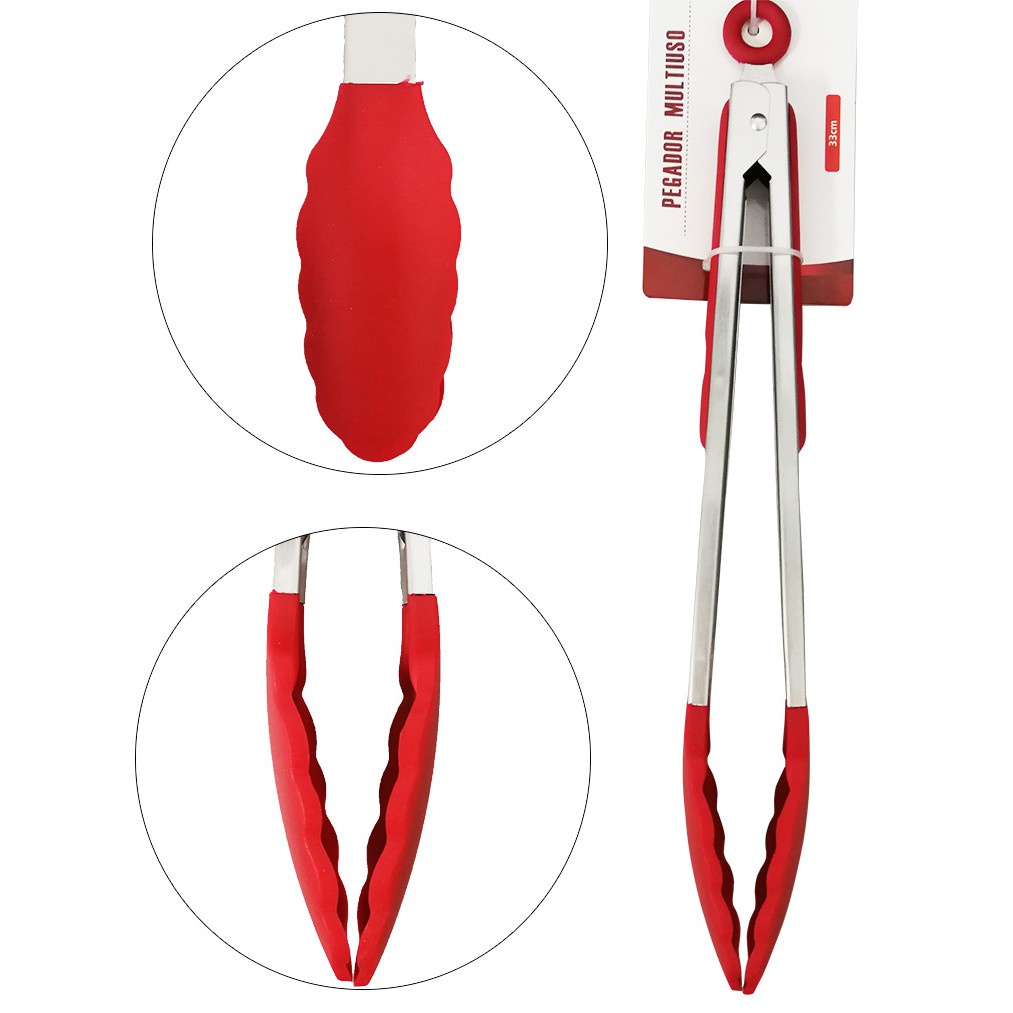 Pegador Silicone Pinça Cabo em Inox para Saladas e Frituras