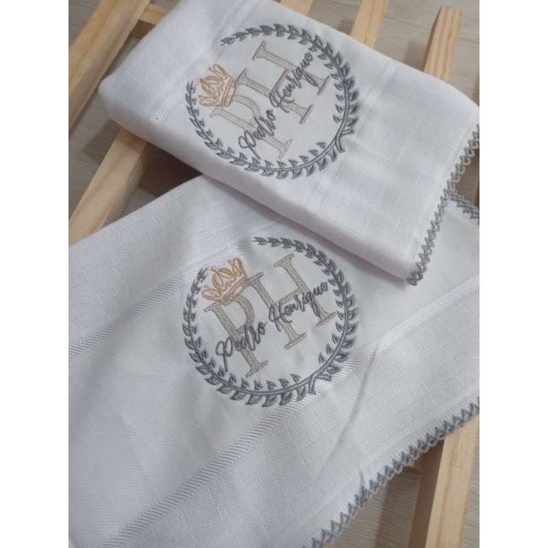 Kit Paninho de boca e fralda de ombro bordado enxoval de bebê PERSONALIZADO