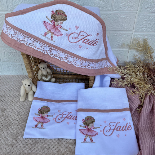Manta de Bebê Fralda Passeio e Fralda de Boca Bordada Personalizada kit com 3 peças