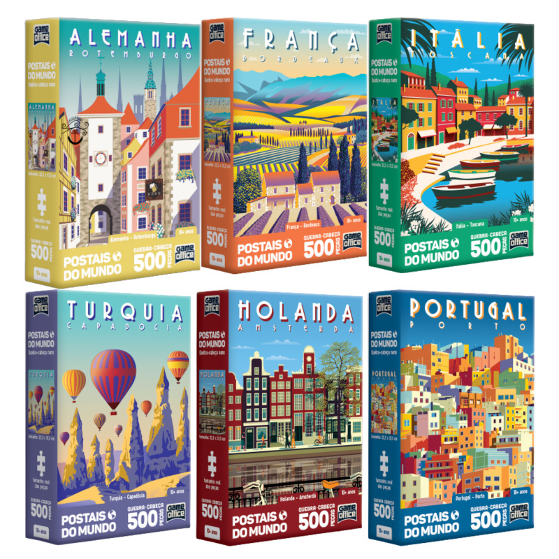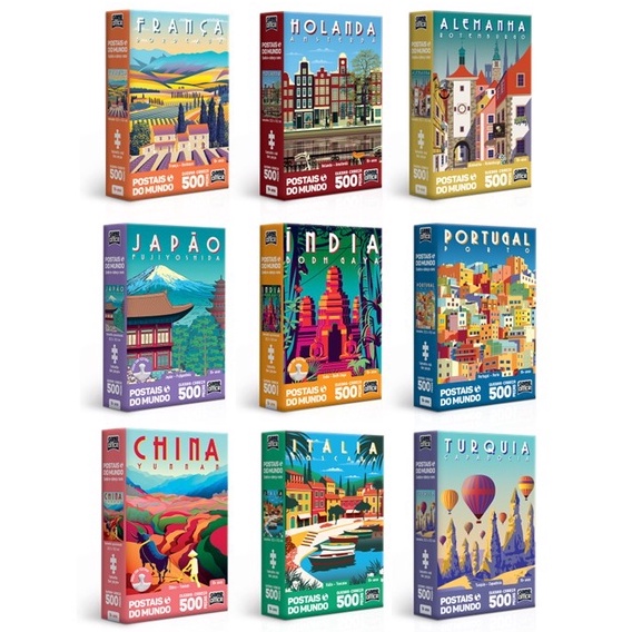 Quebra Cabeças 500 Peças nano - Postais Do Mundo - Kit com até 9 Modelos - Alemanha, França, Holanda, Itália, Portugal, Turquia, China, India e Japão