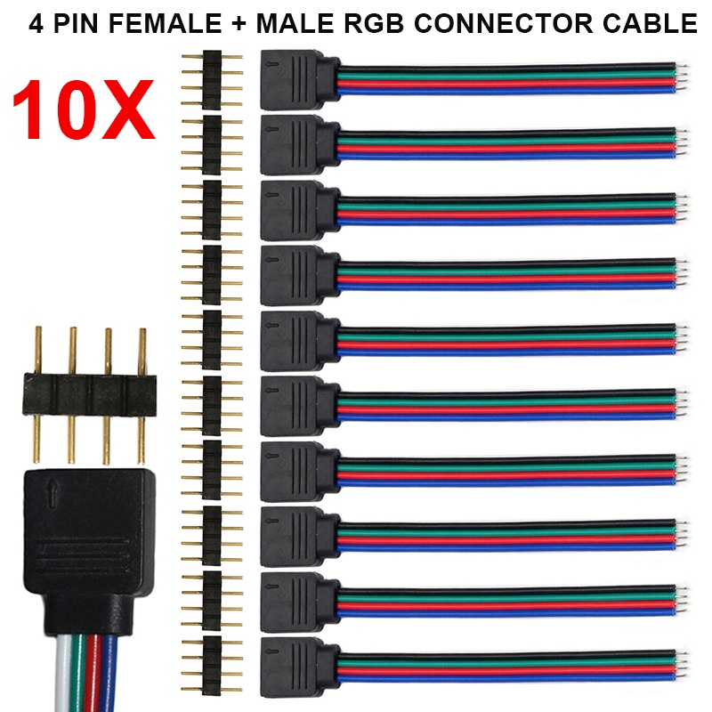 10Pcs 3528 5050 RGB Cabo Conector De 4 Pinos Macho + Fêmea Para Tiras De LED