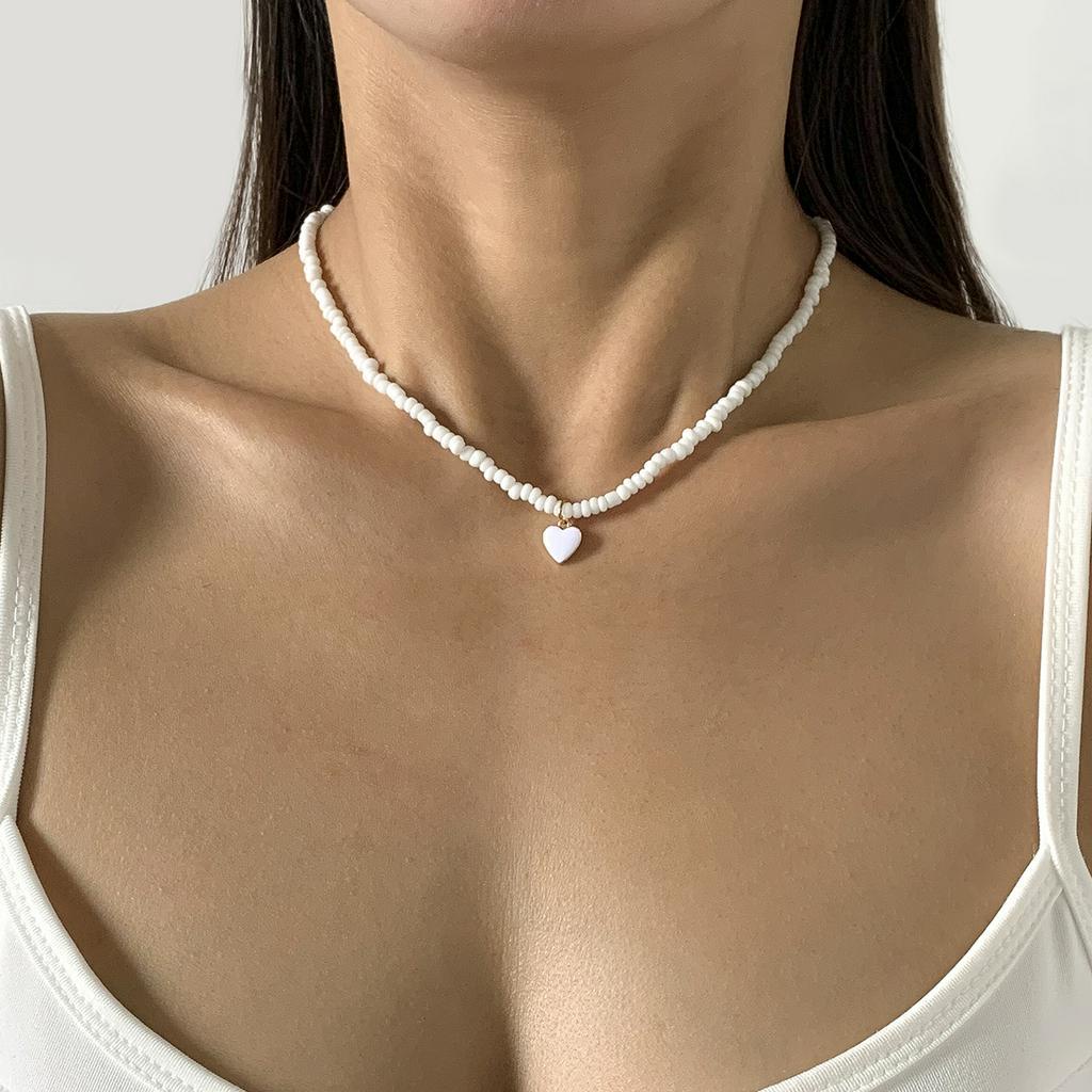 [Super Escolha Econômica] Moda Elegante Colar de Pérola em Forma de Coração Colar de Pingente Senhoras Colar de Corrente com Contas Jóias de Colarinho Acessórios de Colarinho Rosa Branco