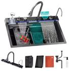 Cuba Cascata Premium Gourmet Multifuncional Smart Pia Cozinha Completa Com Lavador De Copos E Torneira Monocomando Aço Inox 304 Cor Preta Brinovar