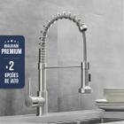 Torneira Para Pia de Cozinha Gourmet Monocomando Pull Down Original Com Extensor Arejador Aço Escovado 304