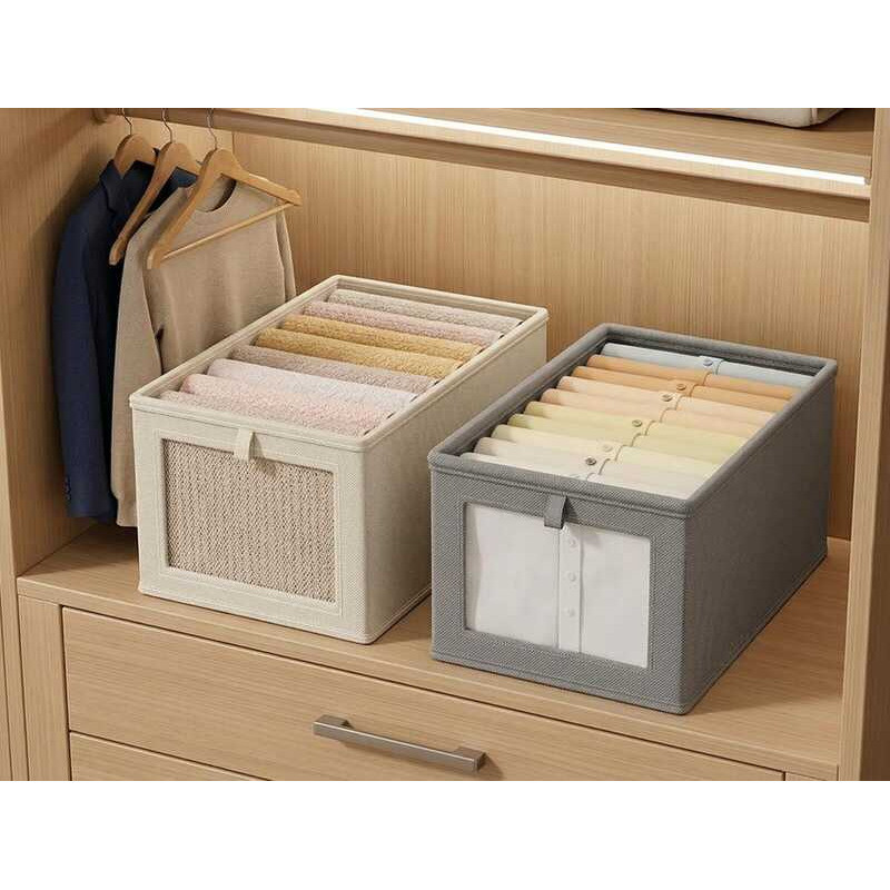 Caixa Organizadora Com 7, 9 ou 12 Divisórias De Guarda Roupa Armário Closet Para Armazenar Calças Jeans Camiseta Roupas Íntimas Separador De Roupa Caixa Multifuncional Dobrável Para Roupas De Gaveta Branco/Cinza