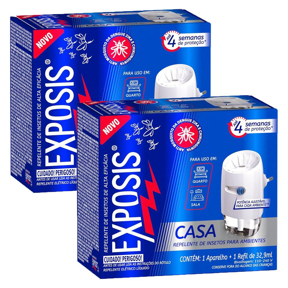 Kit 2 Aparelhos Elétrico + Refil Repelente Líquido Exposis Casa 32,9ml