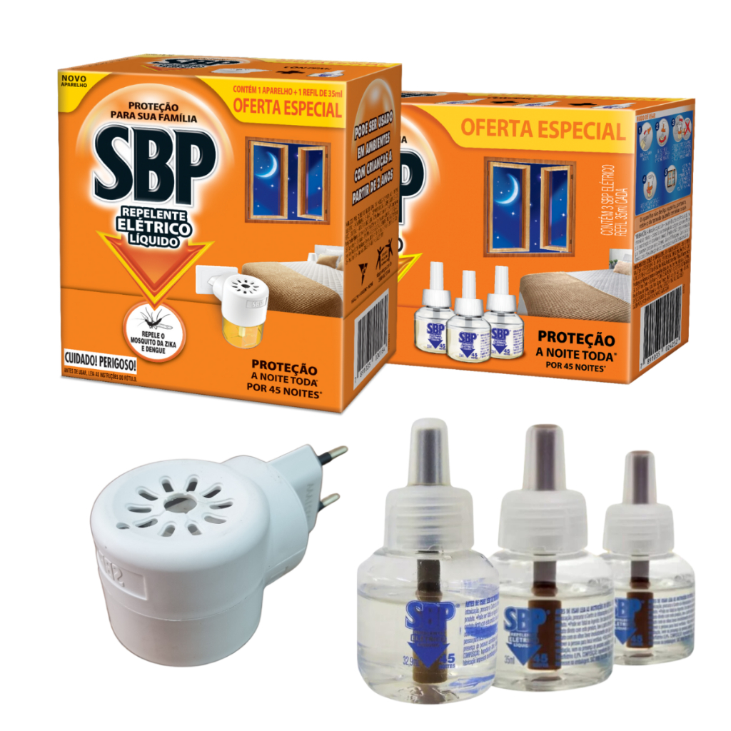 Kit Repelente Elétrico Líquido Sbp Aparelho + 3 Refil De 35ml para 135 noites contra dengue mosquito