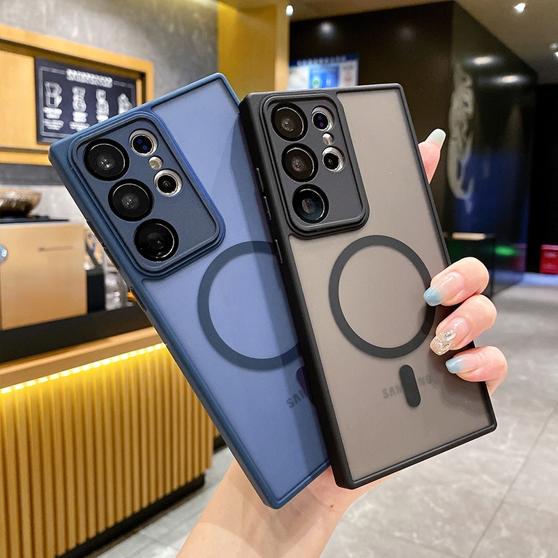 Luxo Matte Translúcido Magnético Sem Fio Cobertura De Carga Para Samsung Galaxy S23 S22 Ultra Plus S22Plus S23Plus Com Lente De Vidro Borda Macia À Prova De Choque PC Caixa De Telefone Rígido