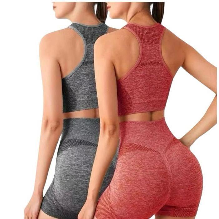 Conjunto Academia Feminino Levanta Bumbum Short e Top Com Bojo Moda Fitness Sem Costura Roupas Femininas Conjuntos/Calças e Leggings