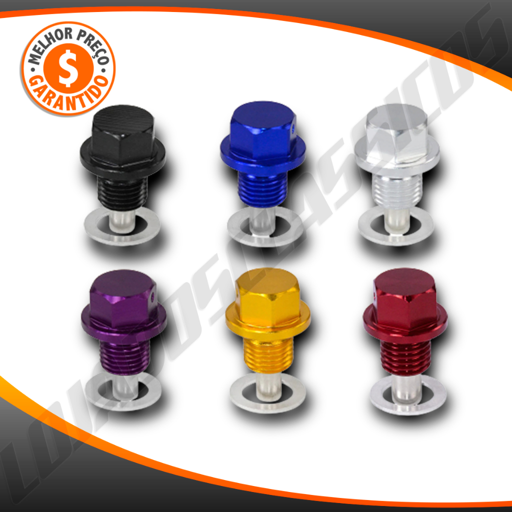 Bujão magnético para motores. Parafuso tampão do cárter com imã. Retira partículas metálicas do óleo