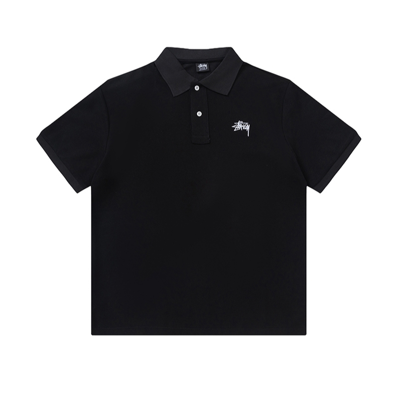Pólo Reto Loose Fit Lapela Camiseta de manga curta Logotipo Bordado Clássico Estilo Clássico Casual Estilo Preppy Preppy Estilo Algodão Puro Fio Duplo Tecido Unisexo...