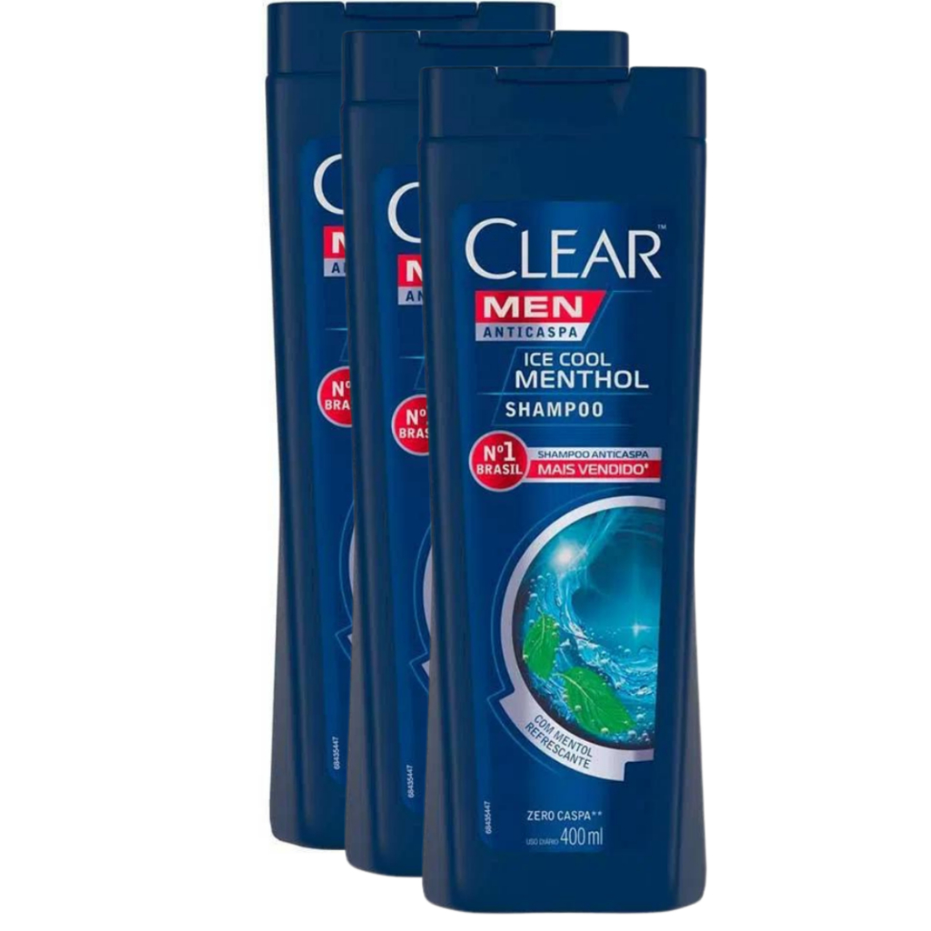 Kit 3 Shampoo Clear Anticaspa Ice Menthol 400ml
