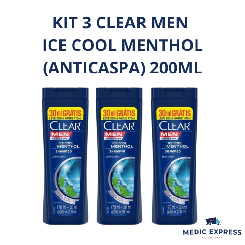 Kit c/3 Shampoo Anticaspa Ice Cool Menthol Clear Men 200ml