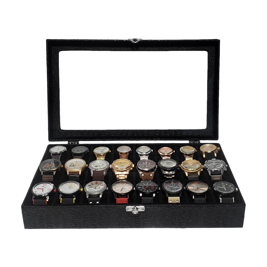 Estojo Para Organizar 24 Relógios Com Preto Interno Aveludado