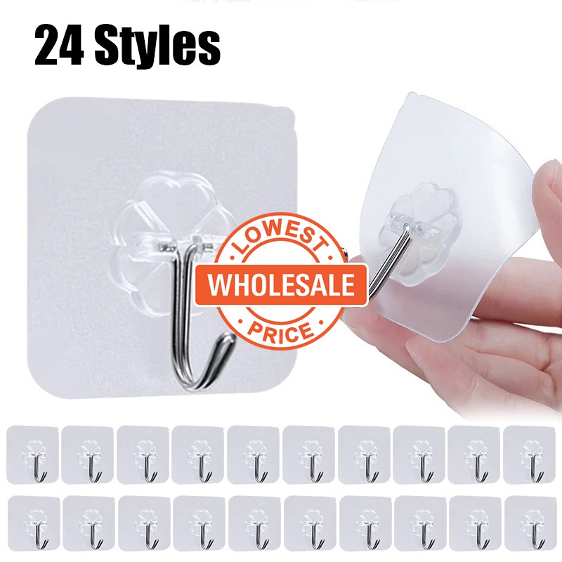 [Wholesale Price] Strong Ganchos Adesivos De Prateleira/Suporte De Gancho De Parede Transparente Auto-Adesivo Forte/Acessórios De Cabide De Banheiro De Cozinha /