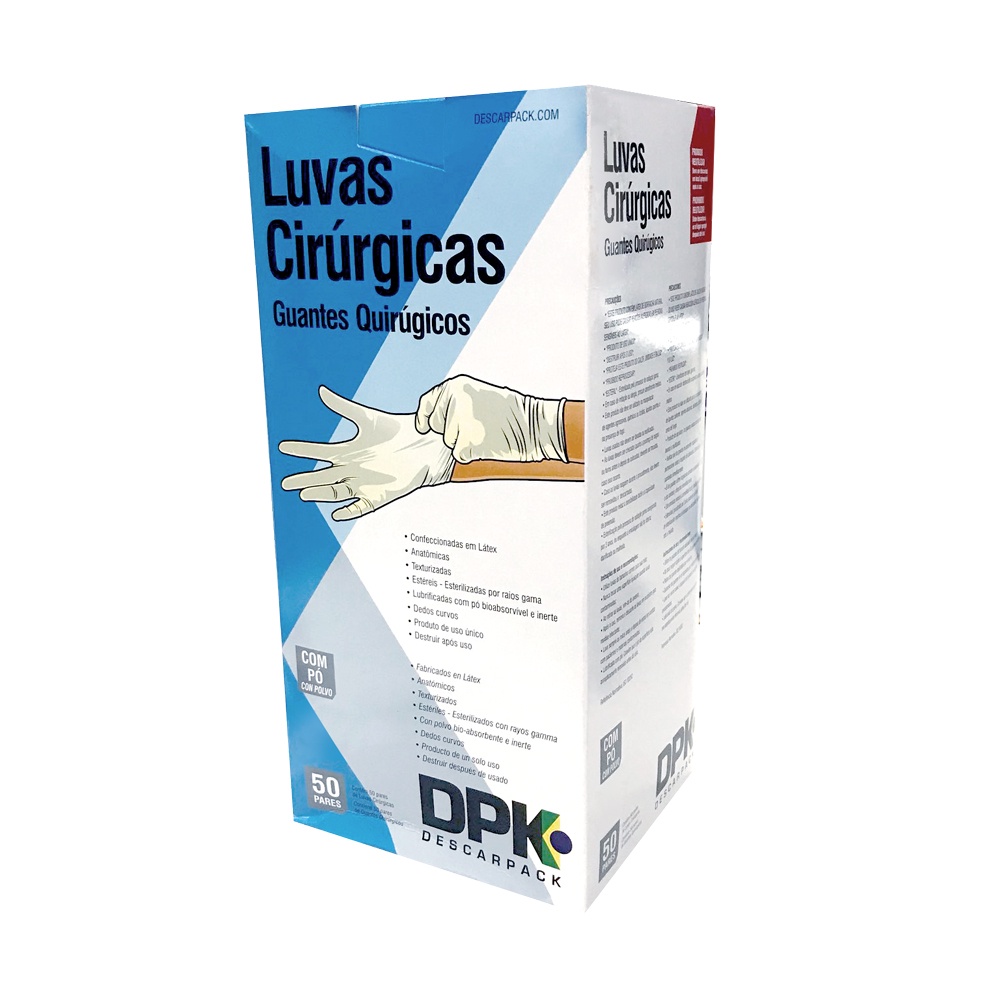 Luva Cirúrgica Estéril Kit 100un 50 Pares Látex Descartável Com Pó Descarpack