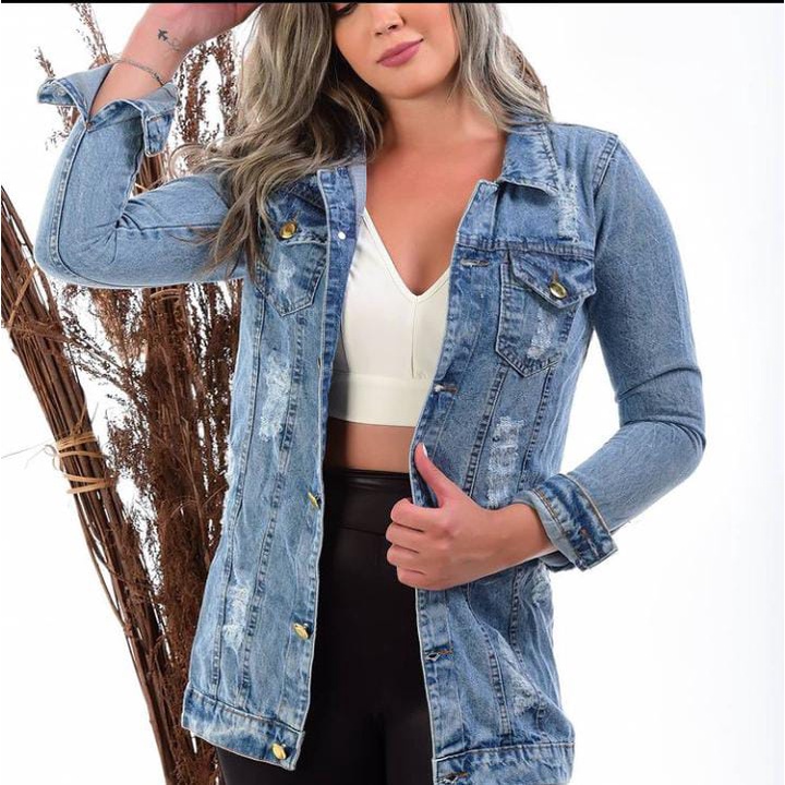 Jaqueta Jeans Feminina Max Blogueira Destroyed Rasgada Top