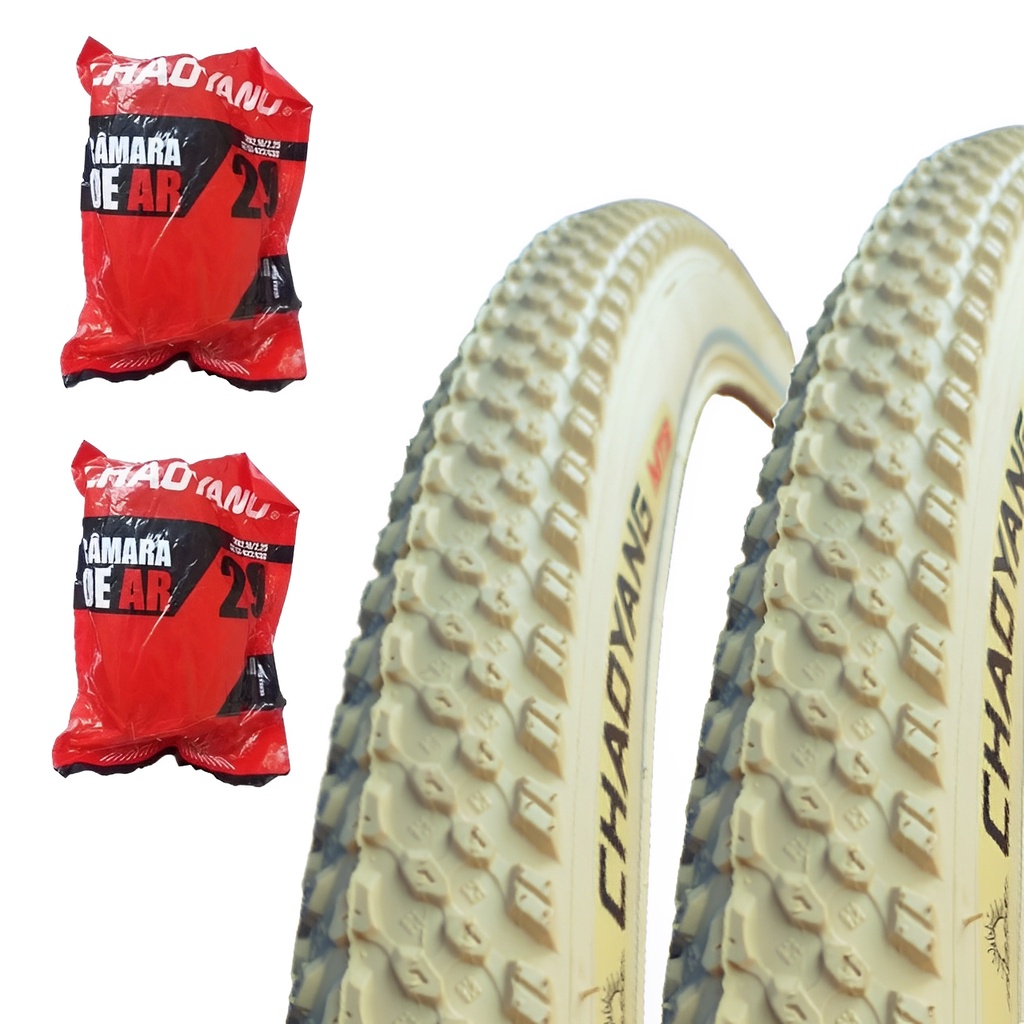 Par de Pneus Chaoyang Bege Mtb 29 x 2.10 Cravo Refletivo + Par de Camara