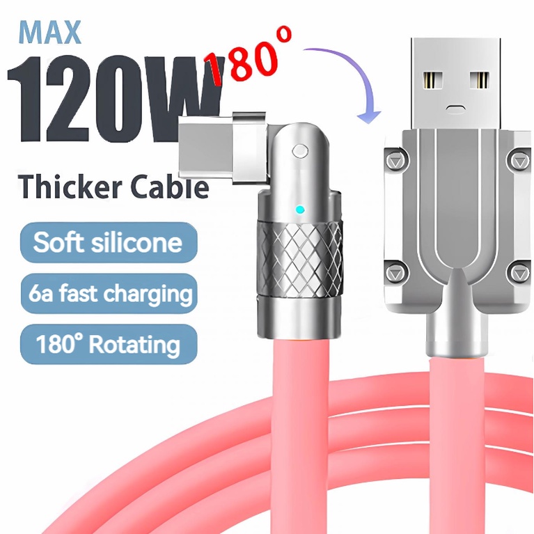 Novo 120W 6A Carregamento Super Rápido 180 ° Cabo De Carga Super Rápida Rotativo Silicone Líquido Para Carregador De Jogo Móvel Tipo C Xiaomi iPhone