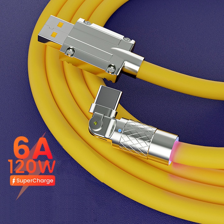 Novo 180 ° Cabo De Carregamento Rápido Tipo C De 120W Giratório Liga De Zinco Conector Led Light 6A Data Mechanic Soft Silicone Geek Elbow Para huawei xiaomi