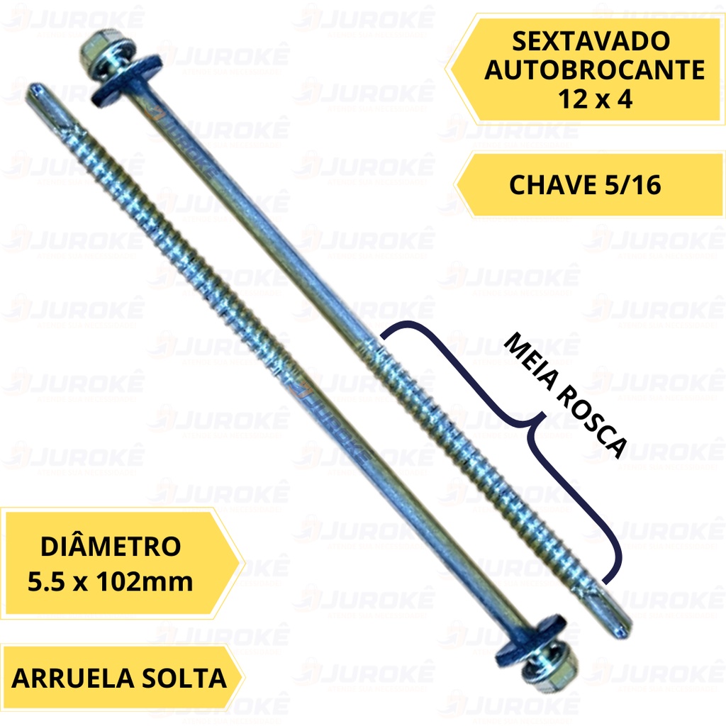 Kit 100 Parafusos Autobrocante Sextavado 12x4 Meia Rosca - 10,2cm
