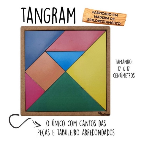 Tangram Brinquedo Educativo Colorido em Madeira MDF 17cmx17cm