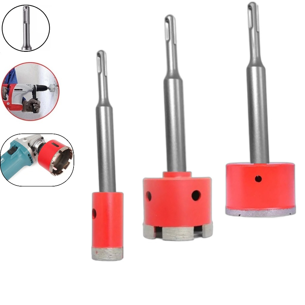 Serra Copo Diamantada Haste Engate Rápido SDS P/ Martelete Furadeira Esmerilhadeira Concreto Porcelanato Parede Piso Cerâmica Alvenaria (ESCOLHA O DIÂMETRO)