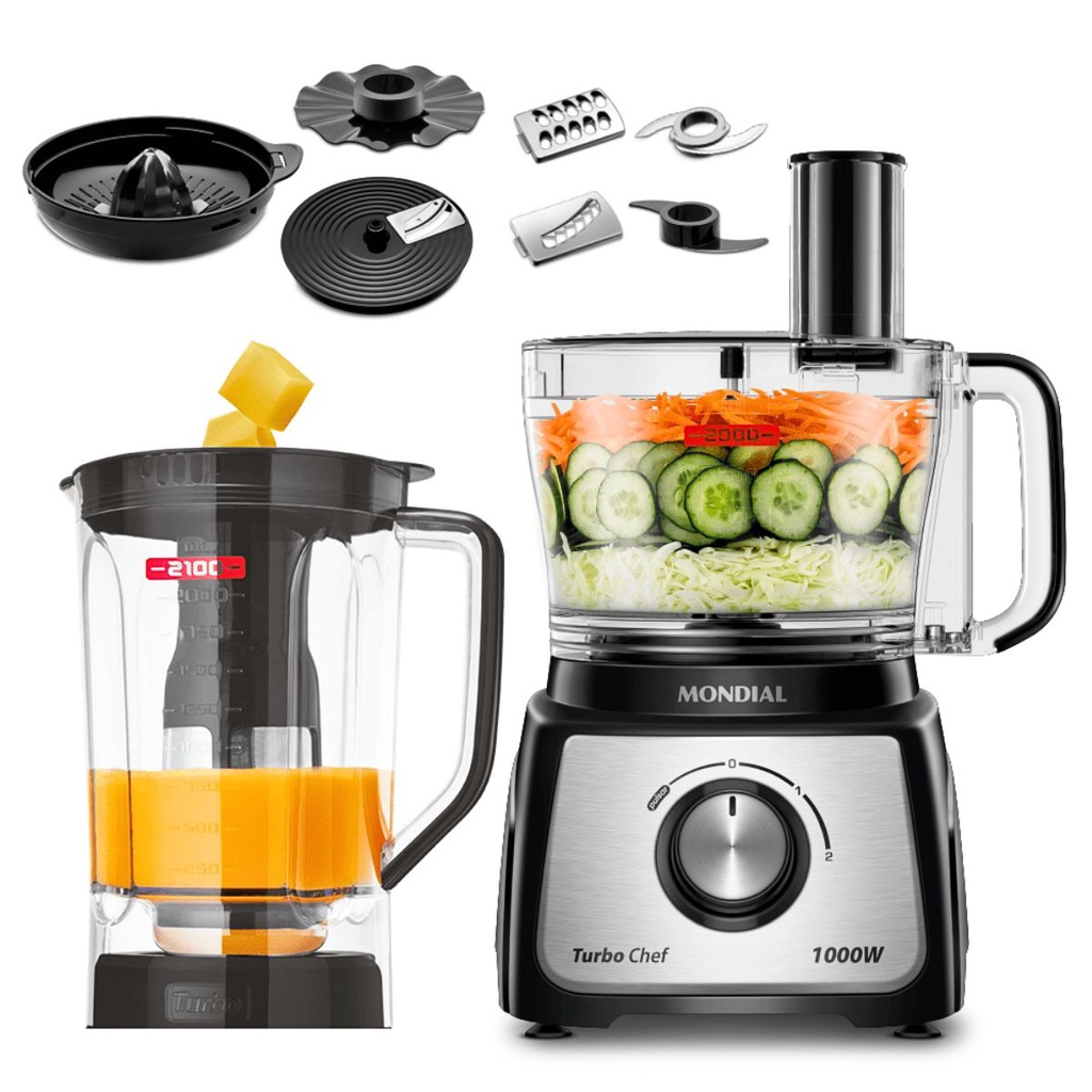 Multiprocessador de Alimentos Mondial Turbo Chef 5 em 1 MPN-01-B com 2 Velocidades + Pulsar – 1000 W