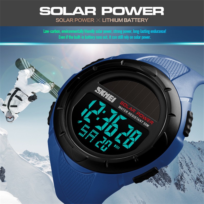 Skmei Relógio De Pulso Esportivo Masculino À Prova D'água Com Energia Solar LED Digital 12/24 Horas