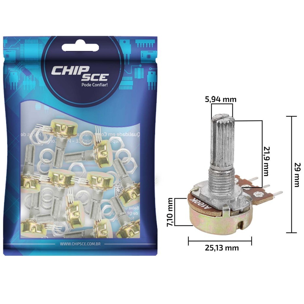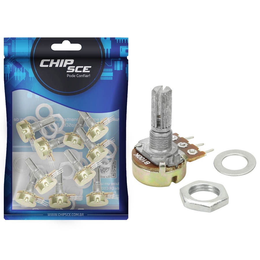 10x Potenciômetro Linear 100Kb L20/16mm Com Porca e Arruela