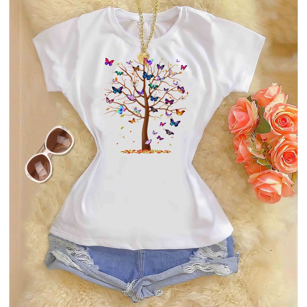 Camiseta blusa camisa t-shirt feminina arvore da vida borboletas vários modelos roupa feminina