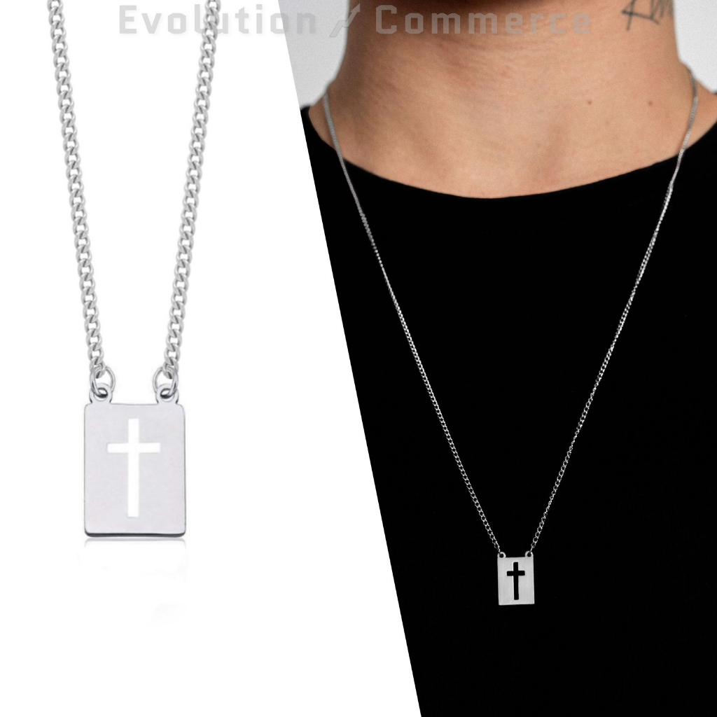 Colar Masculino Corrente com Pingente Cordão Correntinha tipo Escapulário Aço Inoxidável 316L Antialérgico Cruz Não fica Preto Qualidade Pronta Entrega