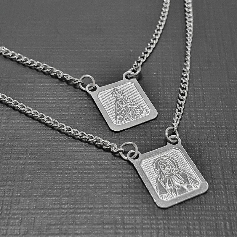 Corrente Escapulário De Aço Inoxidavel Da Nossa Senhora Aparecida E Coração De Jesus Escapulario Inox