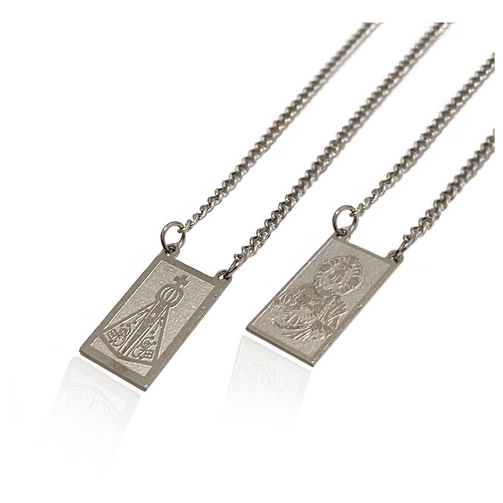 Escapulário De Pescoço Corrente Unissex Aço Inoxidável Da Imagem Nossa Senhora Aparecida e Coração de Jesus Escapulario Inox