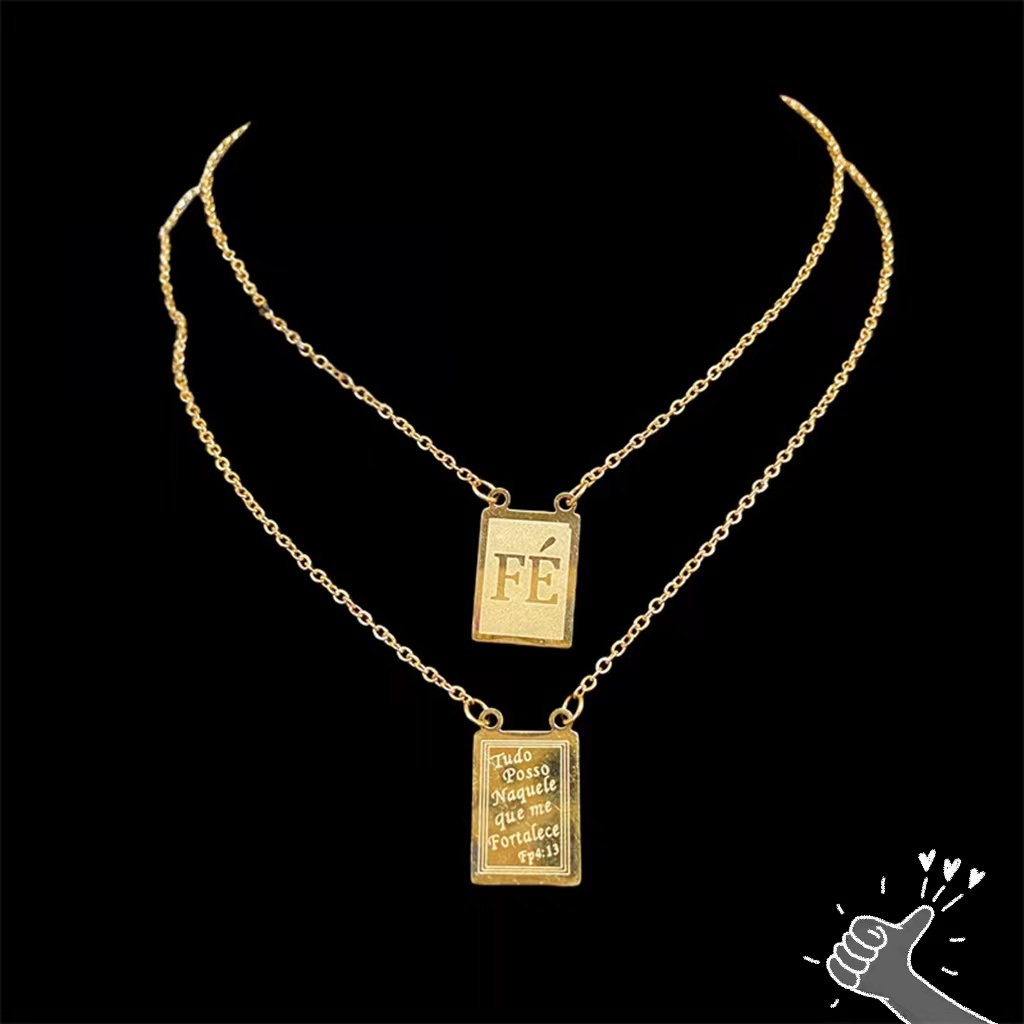 Escapulário Colar Aço Inox Cruz/Estrela de Davi/Nossa Senhora/São Jorge/Tudo Posso/Sao Bento/Naquele que Me Fortalece/Jesus da Fé Prata Aço Inox 316L