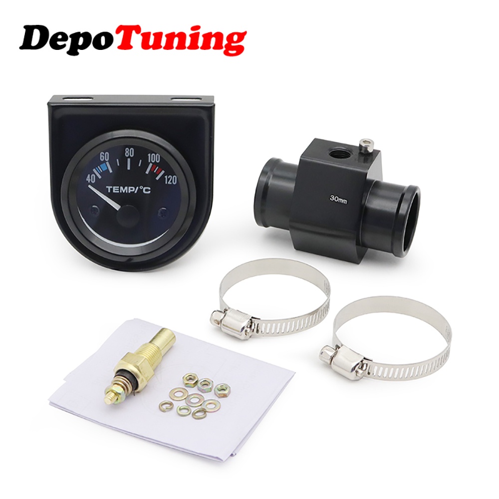 DepoTuning Medidor De Temperatura Da Água Do Carro 2'52mm Branco Led 40-120 Celsius Com 1/8 NPT Sensor De Rosca Preta Adaptador Radiador