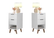 Kit Duas Mesas De Cabeceira Retrô Pés Palito Em Madeira Maciça 2 Gavetas E 1 Nicho - Verona - Off White Com Nature - Lojas GD