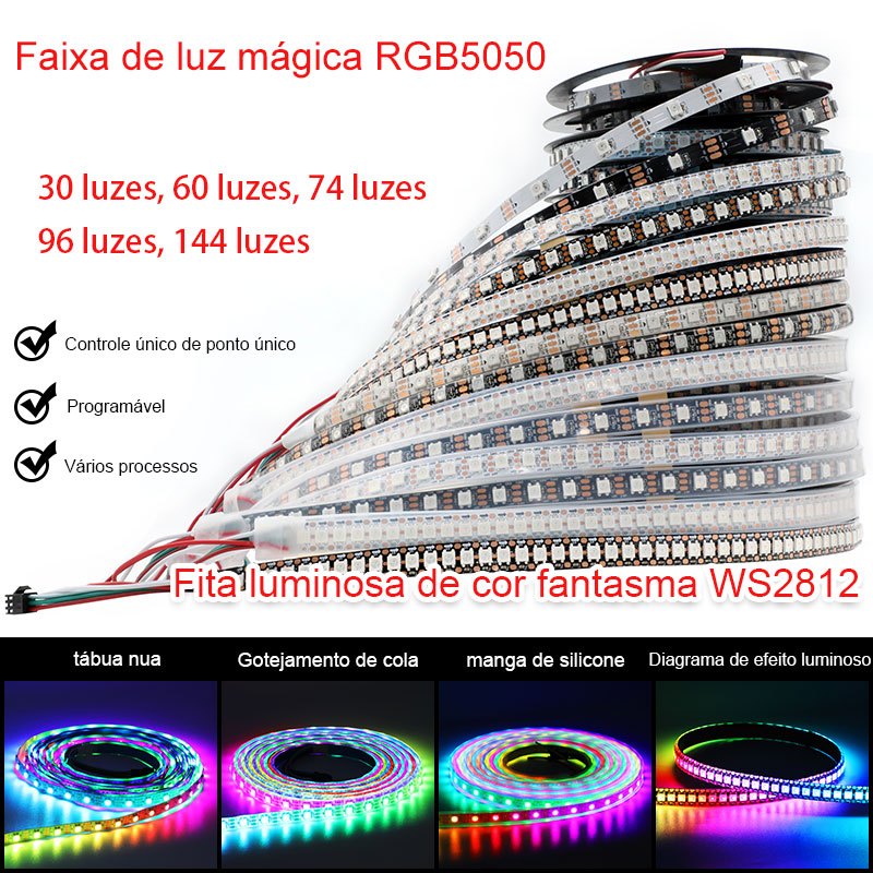WS2812 5m/rolo DC5V Fita LED RGB5050 de alto brilho Controle integrado de uma luz e uma luz Barra de luzes Magic Meteor Bar, luz ambiente para decoração de festas