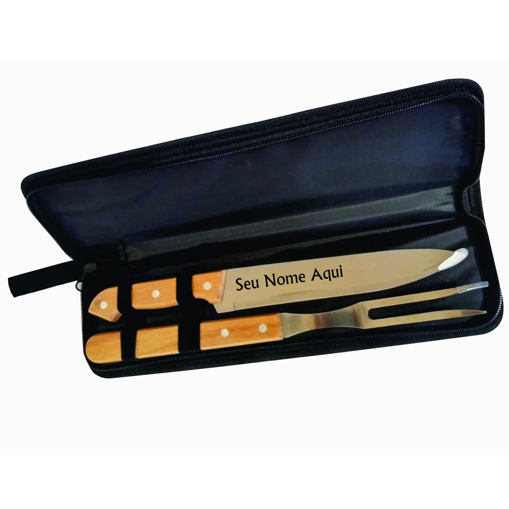 Estojo Churrasco Faca e Garfo com Bag Kit Personalizado Inox Presente Pai