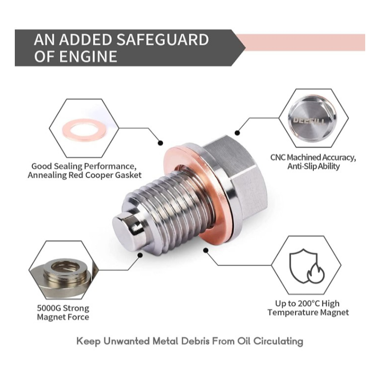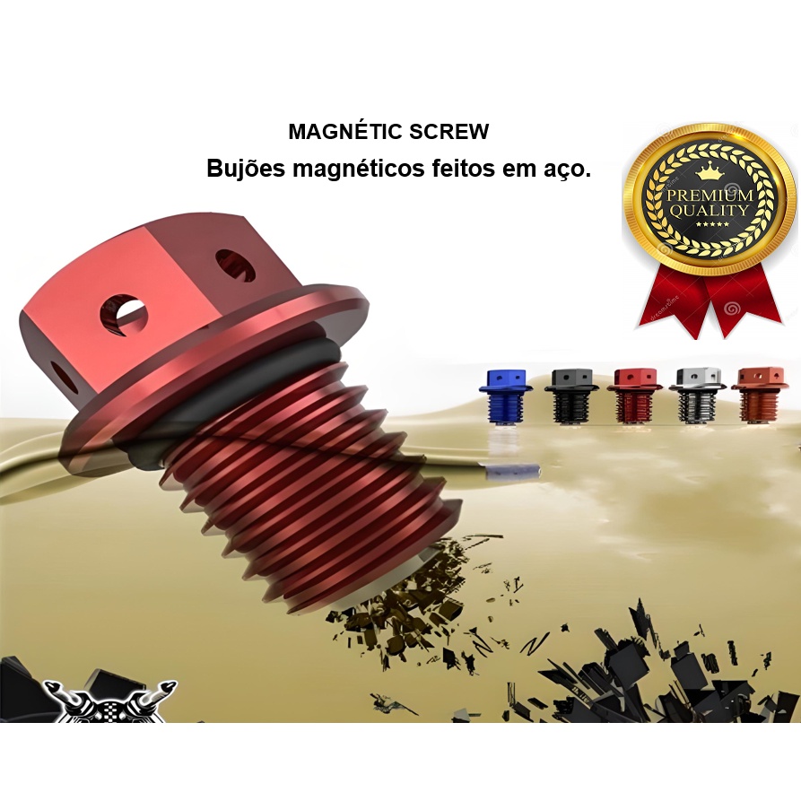 Bujão magnético para motores. Parafuso tampão do cárter com imã. Retira partículas metálicas do óleo