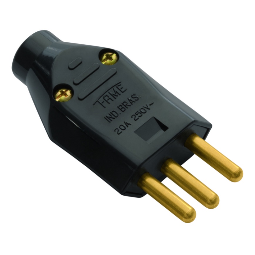 Plugue Junção Macho 2p+t Fame 20a Tripolar Preto ou Cinza Maciço