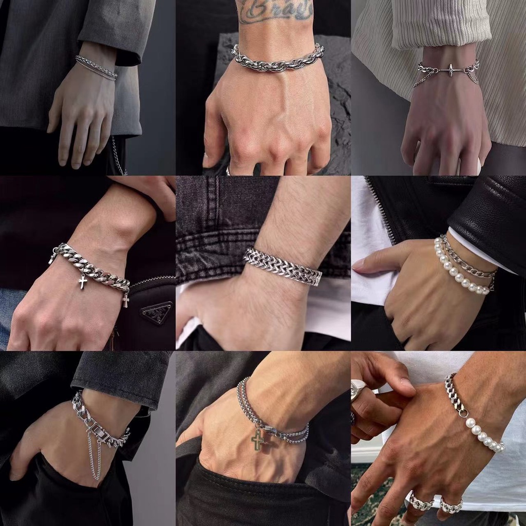 Clássicas Correntes De Pulso Com Duas Camadas De Pérolas Para Homens Cruzam Rectângulo Facial Sorridente Pulseiras Pingentes De Marca