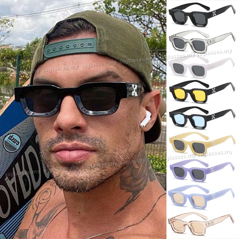 【 Ready Stock 】 Ins Moda Rectângulo Oco Design Hip-pop Off-white Retro Óculos De Sol