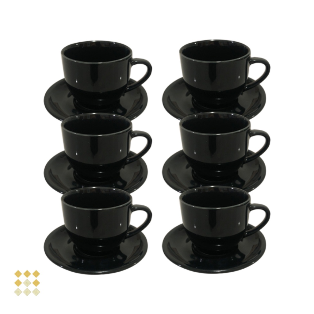 Jogo 6 Xicara Café Chá Porcelana Preta 170ml com Pires - Mundo da Porcelana